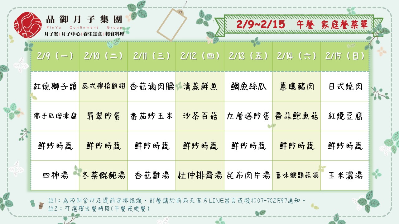 註:如已訂購餐點,需暫停餐點,請於前一天17:30前通知,逾時通知則照常出餐。