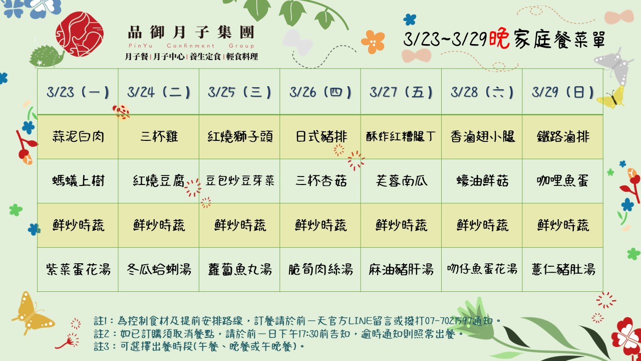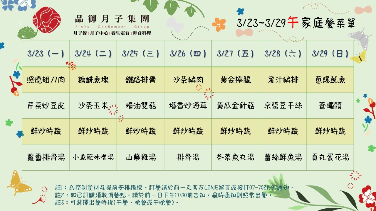 註:如已訂購餐點,需暫停餐點,請於前一天17:30前通知,逾時通知則照常出餐。
