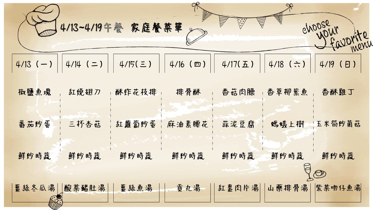 註:如已訂購餐點,需暫停餐點,請於前一天17:30前通知,逾時通知則照常出餐。
